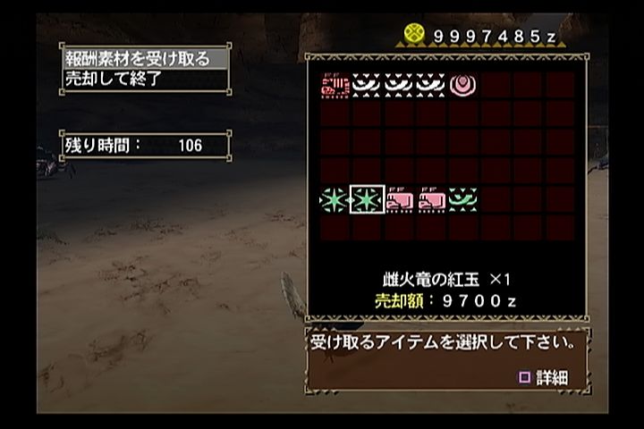 繁殖レイア亜種クエ(in砂漠)なんだけど、捕獲で紅玉が2つ出た。